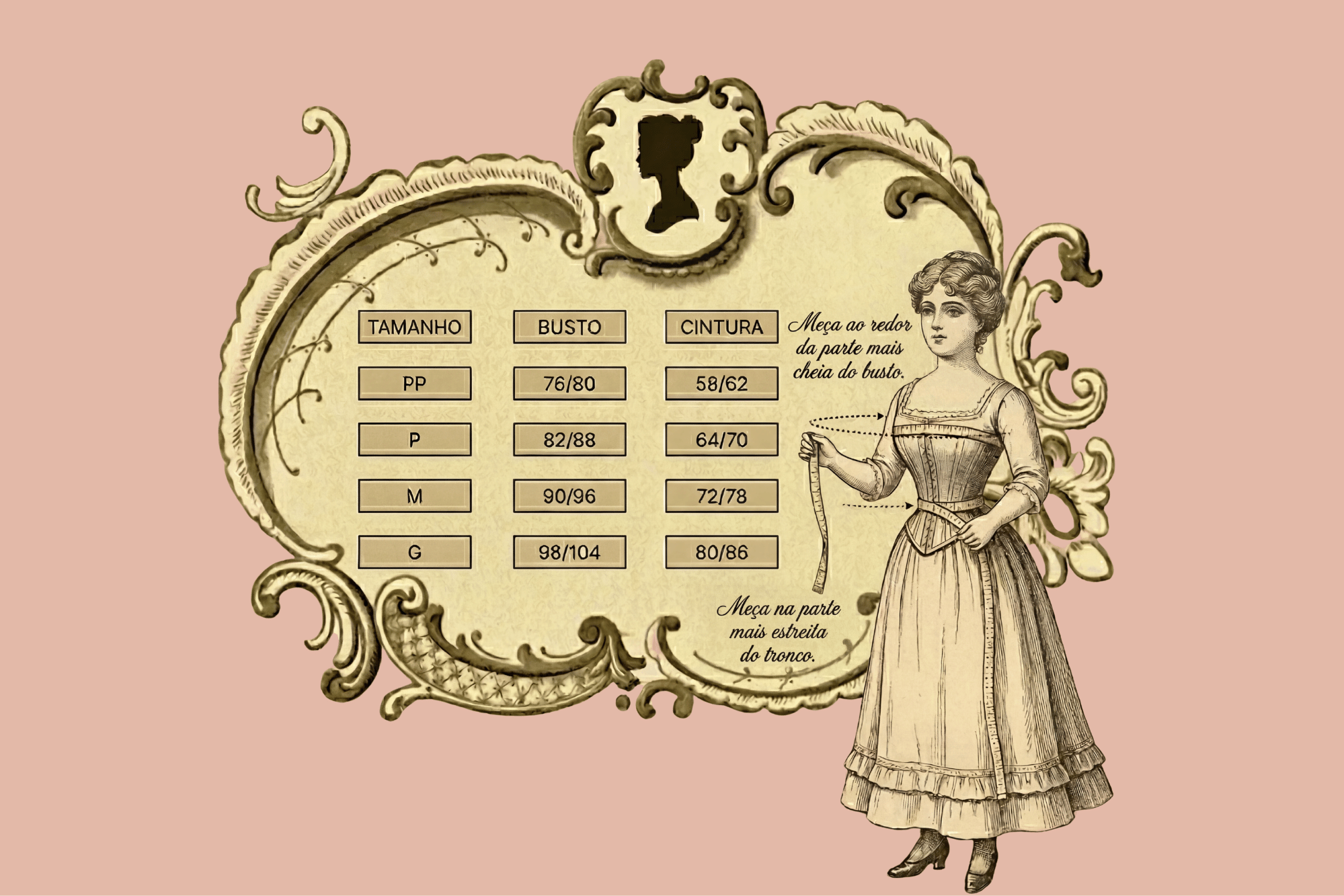 Os cats corsets são feitos com tecido em tapeçaria na parte frontal e tecido liso preto nas demais partes.